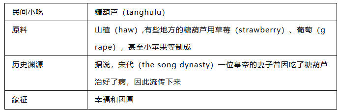 It is said that tanghulu ever saved the life of an emperor’s wife in the Song Dynasty. It was so delicious and healthy that many Chinese people like eating it. It is now seen as the bright symbols of happiness and reunion.
