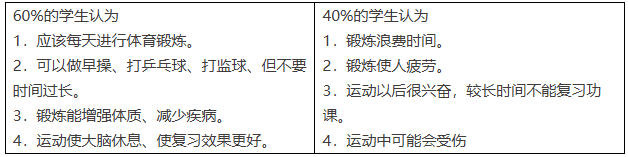 On the other hand, 40% believe taking exercise is a waste of time and tiring. After having sports, they are too excited for a long time to draw attention to their lessons. It’s possible to be hurt in sports.