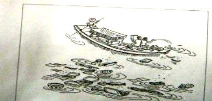 As is subtly portrayed in the cartoon, two tourists are taking sightseeing on a small boat while discarding their picnic leftovers casually into a lake. Unfortunately, the lake is already littered and teamed with flow rubbish like plastic containers, fish-bones, banana peel, watermelon rind, bottles, tins, food wrappings, and so on. And below the drawing, there is a topic which says: “after” the travel.