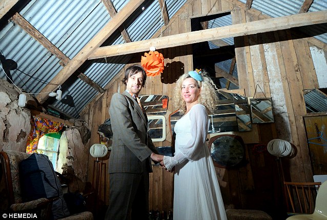 The wedding rings were even handcrafted by the bride herself from antlers found in her garden while her vintage wedding dress cost a whopping Pound 1 or $1.50 - the couple's only other expense.