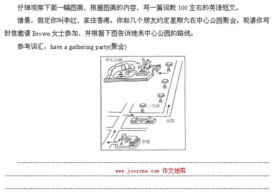 作文地带导读:这是一篇图画说明文,根据图画,指明路线,如何到达中心公园。注意观察图画,确定出发点、行走路线、目的地,灵活使用表达路线的表达语。