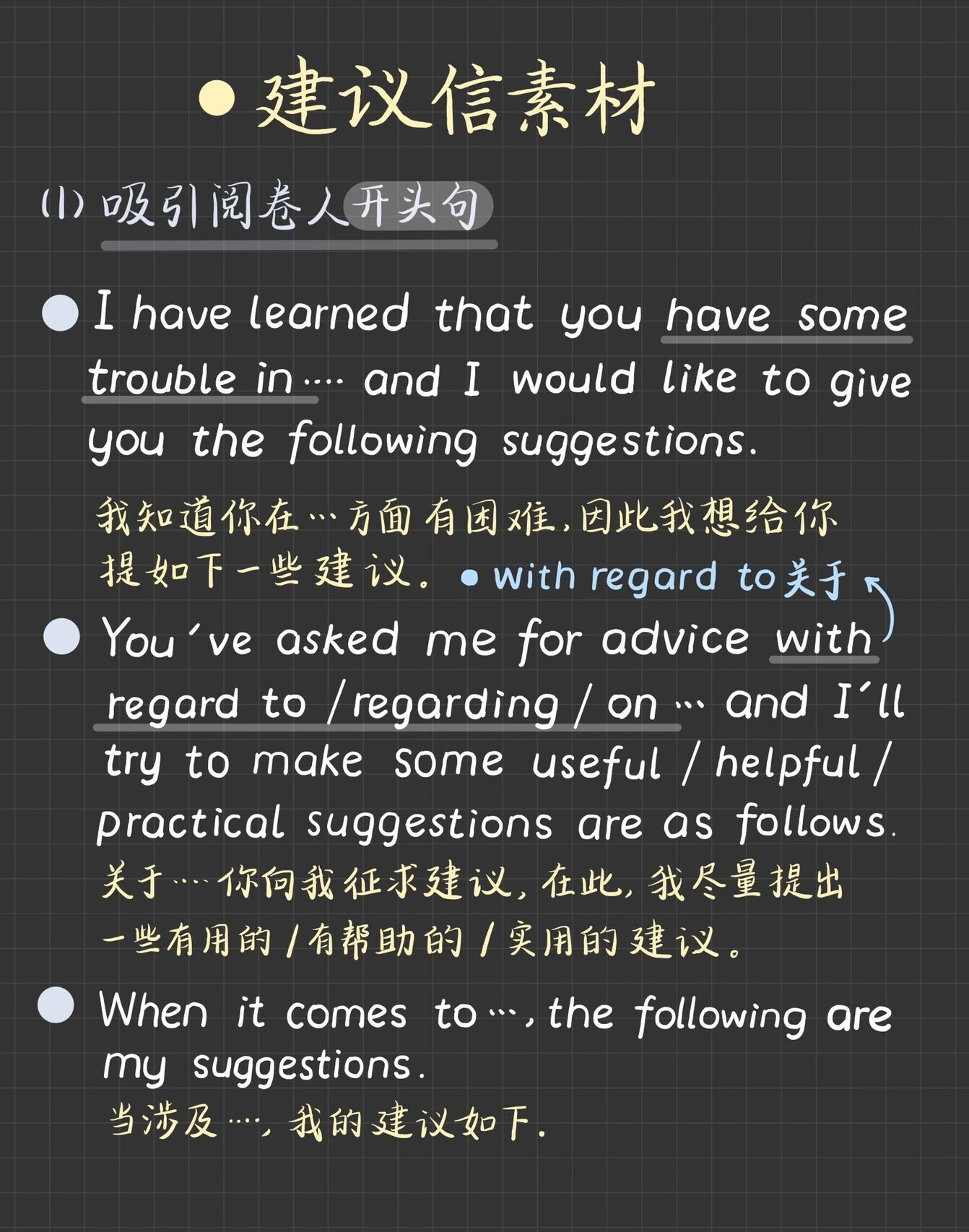 A Letter of Suggestion; Letter of Advice; Suggestions.