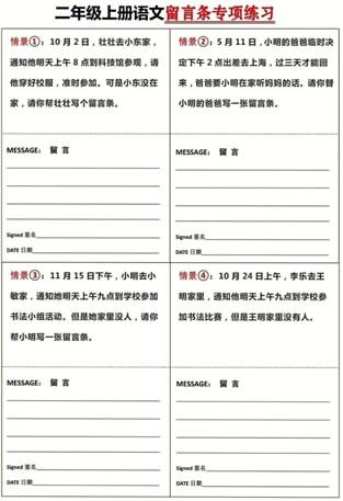 留言条的格式也分四部分:称呼、正文、署名和日期。