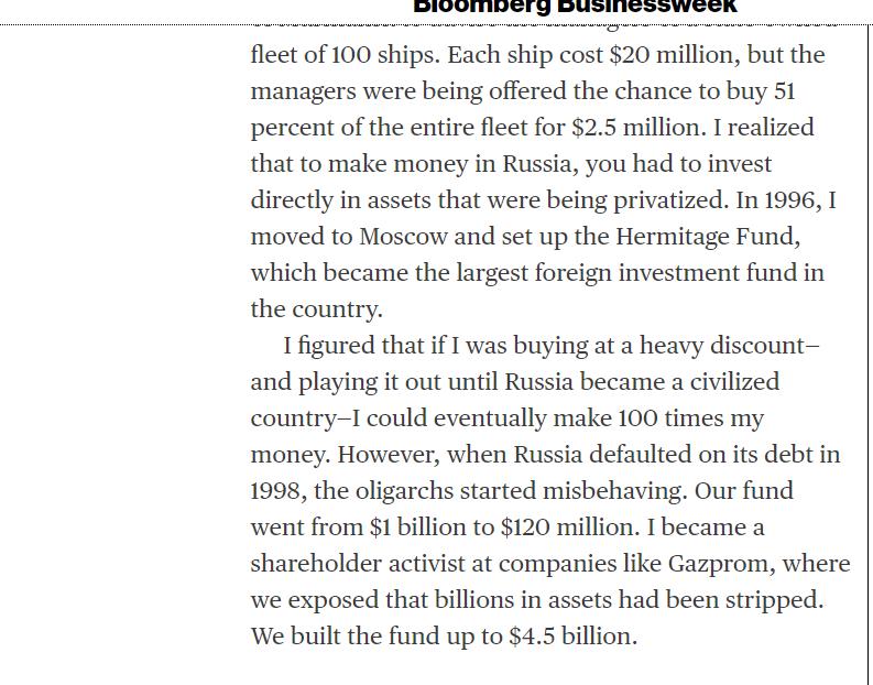 Answer questions all 7 questions in a report of no more than 2 pages.ASSIGNMENT QUESTIONS1. What are the various ways that managers in Russia extract value out of their companies disproportionate to their equity stakes? Which of these methods seems to be peculiar to the Russia?2. Why do Russian firms have such severe problems of poor corporate governance? What institutions and/or mechanisms are missing or are ineffective?3. Why was Browder particularly interested in taking a large stake in Gazprom?4. What is Browder’s investment strategy? How does it differ from traditional mutual fund investing? Does his strategy apply only to emerging markets, or do we see similar strategies employed in developed economies?5. Very specifically, how does Browder use the media, which media does he focus on and why that media group?6. Why don’t other investment managers pursue an activist strategy like Browder’s?7. The case ends in the summer of 2002. What should Browder do from this point? Should he maintain, revise or quit his media-based strategy? What other business events may make this strategy less effective in the future?