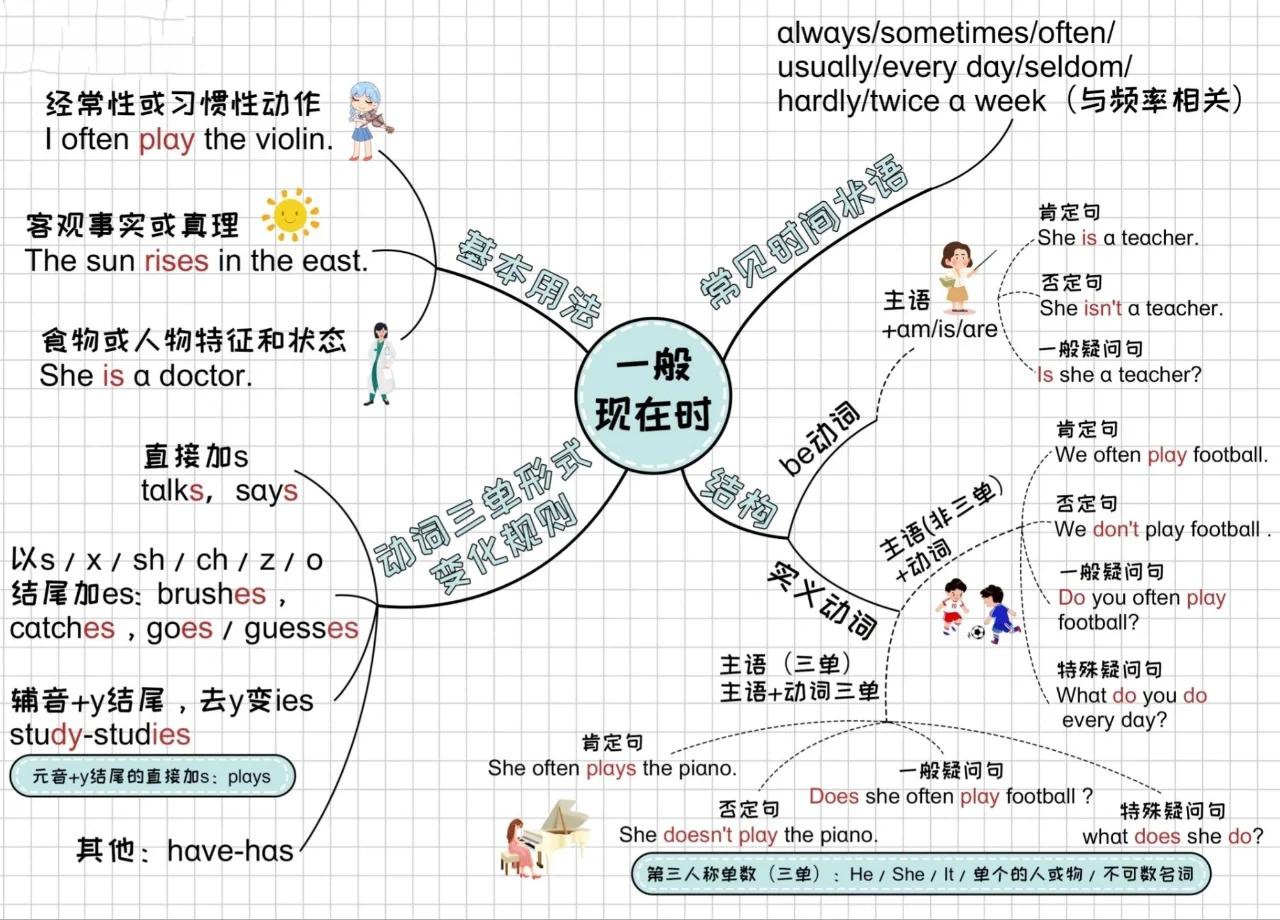 英语语法思维导图(来源:元寶妈咪娅)中小学英语语法思维导图。
