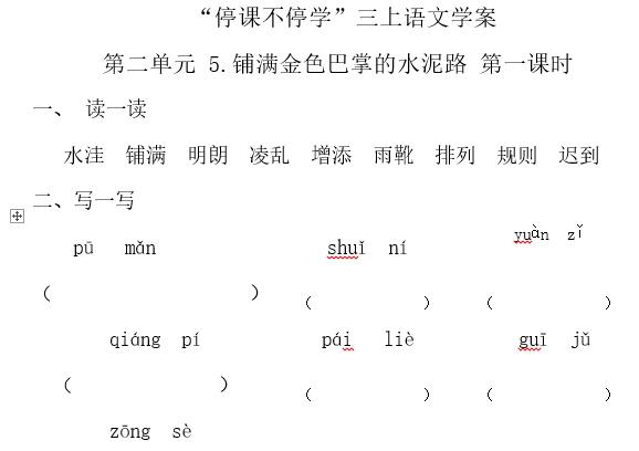 第二单元 5.铺满金色巴掌的水泥路 第一课时