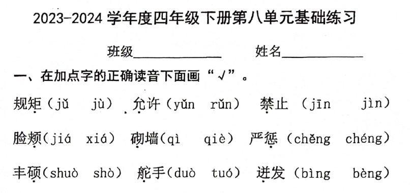四年级下册语文第八单元基础练习,供大家参考。